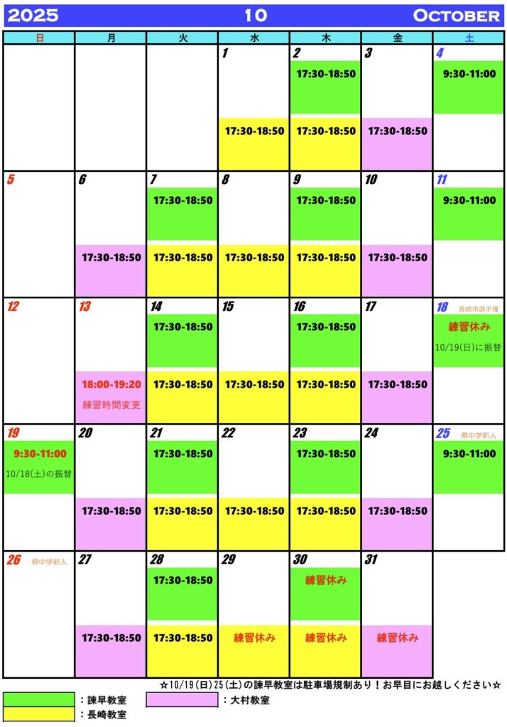 ◇◆長崎ACジュニア練習予定◆◇